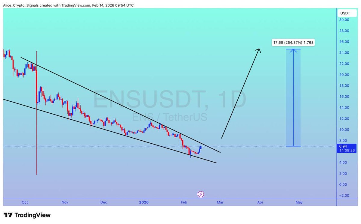 $ENS UPDATE #ENS is making falling wedge pattern. After breakout we can see 200%+ gain here ✍🏻 #ENSUSDT #ENSBTC #BTC #Bitcoin #Crypto