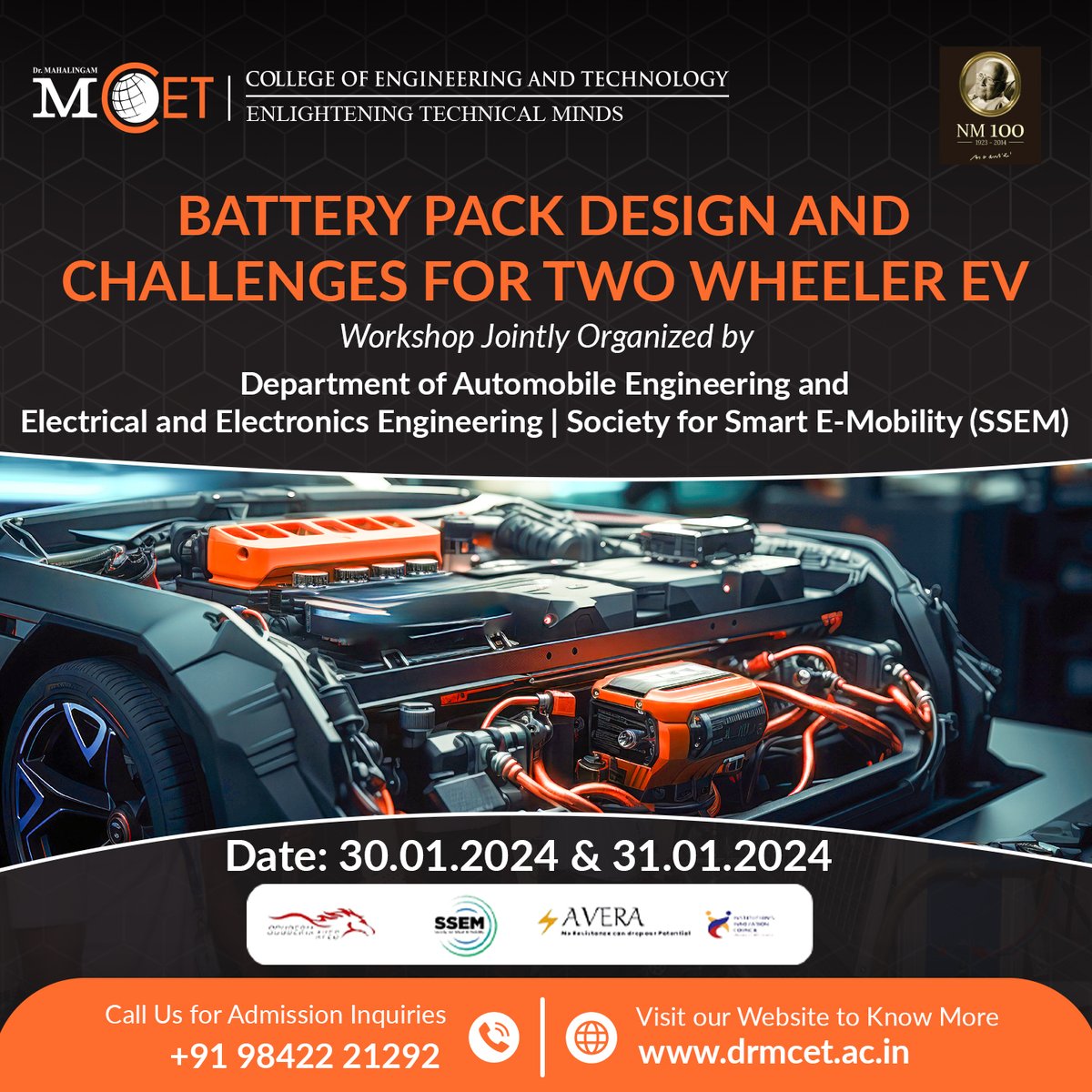 Unveiling the Future of EV's Join us for a deep dive into Battery Pack Design and Challenges for Two wheeler EV! 🚀 Save the date: January 30-01-2024 & 31-01-2024 For more details, contact us at 📞 99422 62839 or 99525 76107. #ev #twowheelerev #evworkshops #mcetcollege