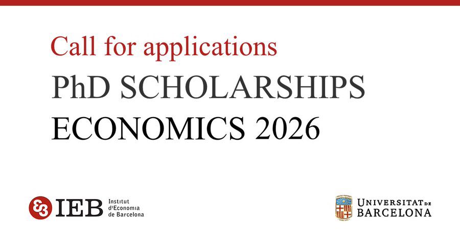 ⚠️ Deadline approaching ⚠️ #CallForApplications: PhD Scholarships in Economics 2026 👩🎓👨🎓 📌 Deadline: 30 April We offer two #PhDScholarships for 3 years starting in the 2026–27 academic year to enroll in the PhD programme in #Economics (@UniBarcelona) ℹ️ f.mtr.cool/dvgfmpcxpc