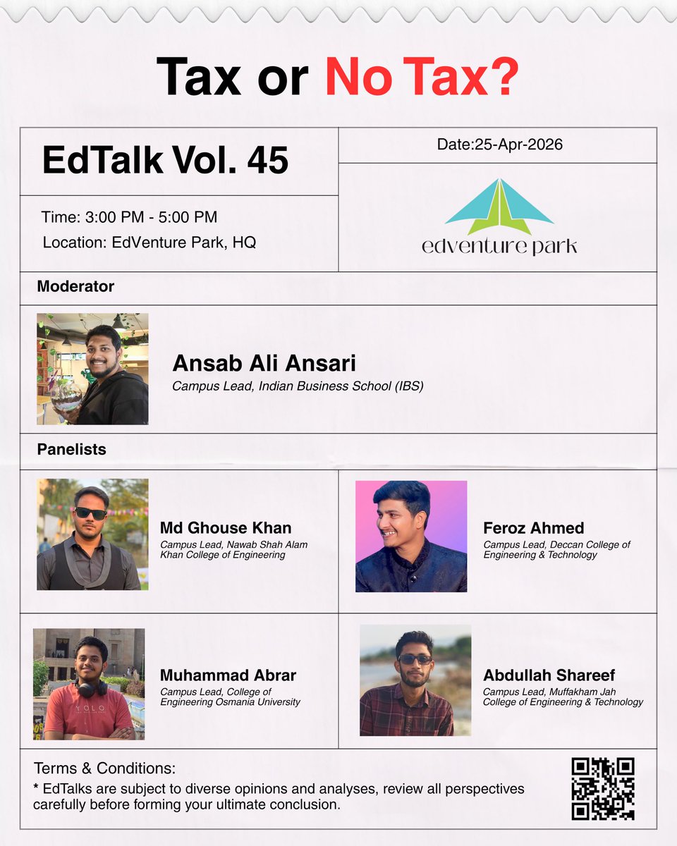 A subject that impacts every earning hand, every growing business and every future founder deserves more than a passing opinion. This edition of EdTalk invites you to step into a conversation on Tax or No Tax? - #FlyWithEVP #EdTalk #paneldiscussion