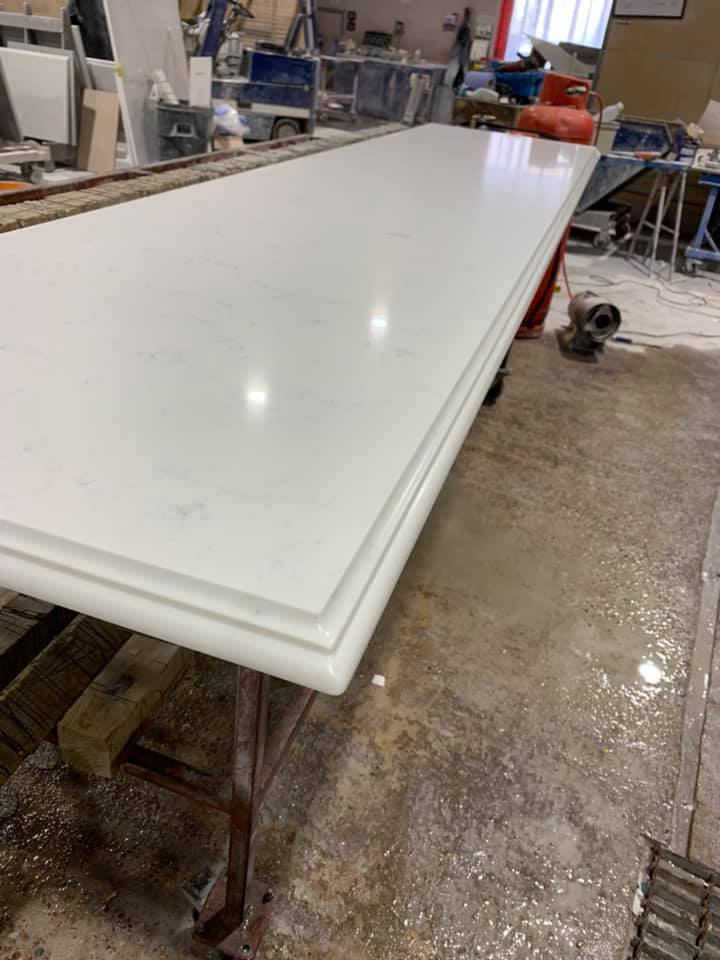 A beautiful Ogee edge profile with a Bullnose 😍 We think this adds a classic yet high end look to a kitchen! What do you think? #MayfairGranite #Quartz #EdgeProfile #NewKitchen #KitchenInspiration #Kitchens #QuartzWorktop #QuartzIsland #Inspo #MarbleEffect #WhiteWorktops