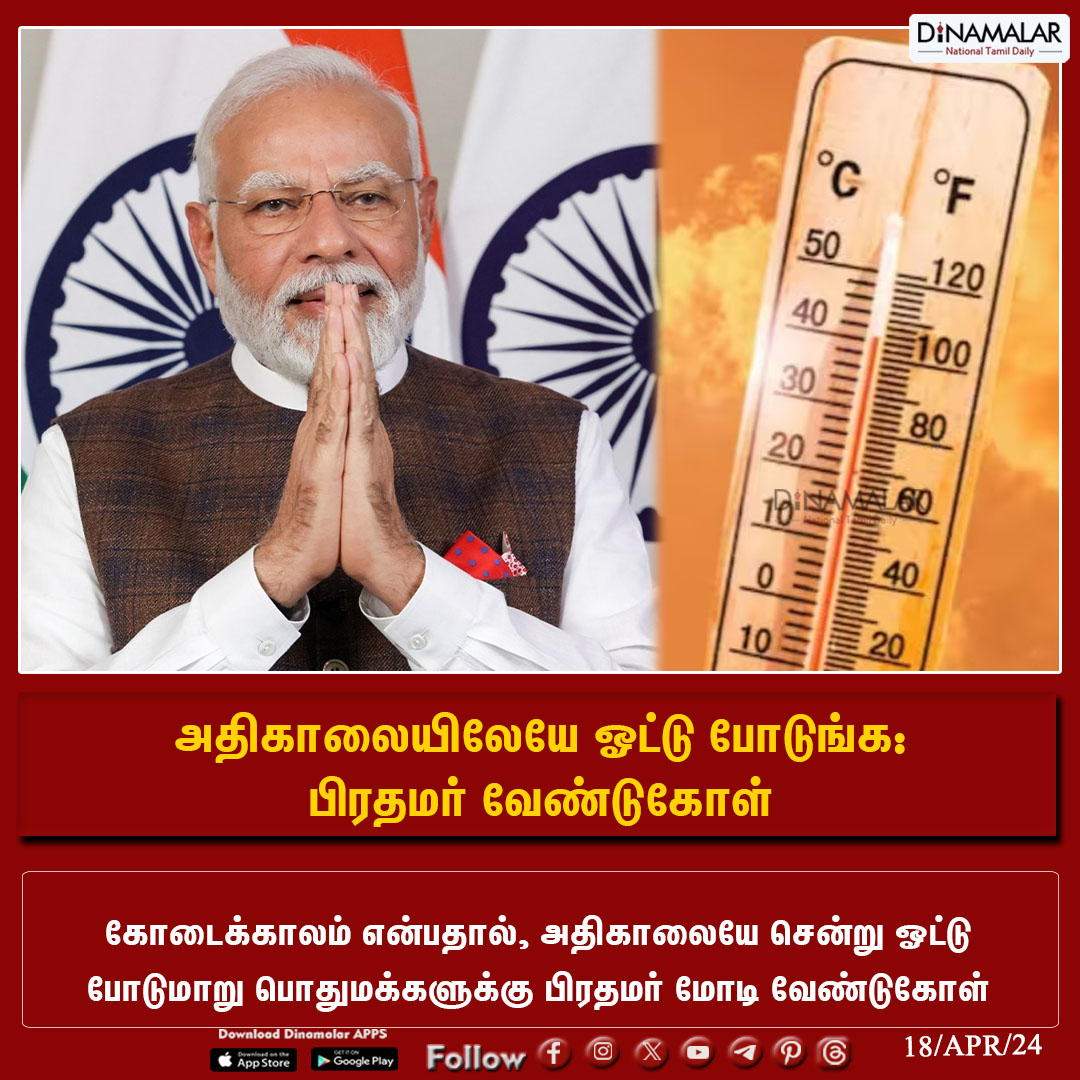 அதிகாலையிலேயே ஓட்டு போடுங்க: பிரதமர் வேண்டுகோள் #PMO | #Modi |#Elections2019 |#Elections2021 |#IndiaElections |#Elections|#GeneralElections |#ElectionCommissionOfIndia Dinamalar.com