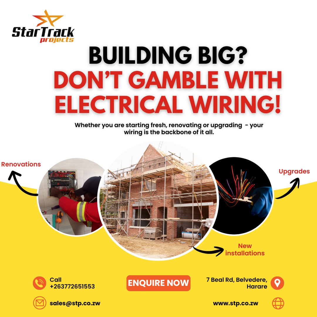 Strong foundations go beyond brick and mortar, safe professional wiring keeps your project powered. Lets wire your vision into reality! +263772651553 [email protected] stp.co.zw #electricalwiring #constructionzimbabwe #electricalexperts