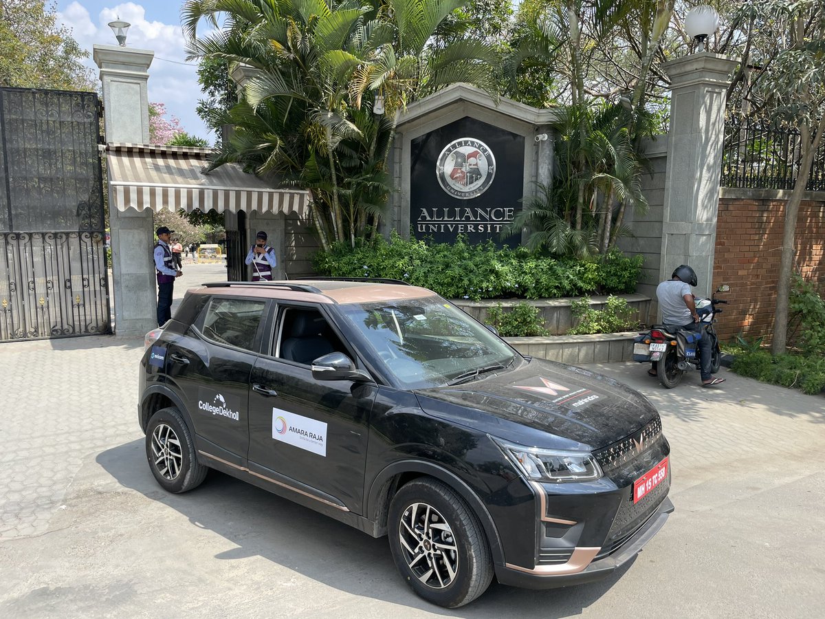 Day 13. A student interaction on e-mobility and sustainability topics at Alliance University, Bengaluru followed by the @Mahindra_XUV400 demo. @CollegeDekho @AmaraRaja_Group @ExicomPower #driEVtoeducate #ElectrifyingTheFuture #PoweringTheBetterFuture #thesunpedalride