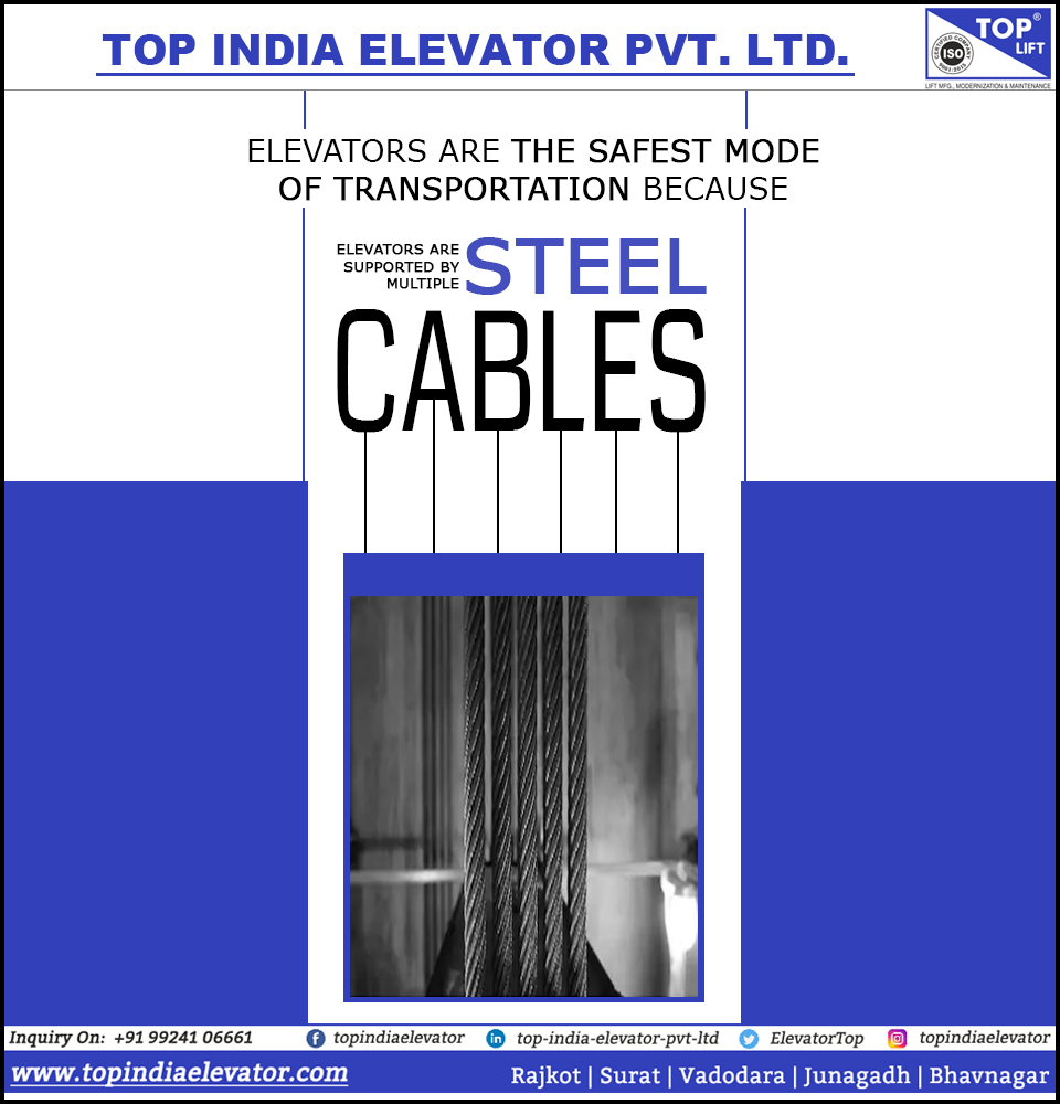Every Elevator is supported by multiple cables & each of those cables can safely carry the entire elevator & its passengers. #ElevatorSafety #FeelSafe #ElevatorRope #StaySafe #TopQuality #CustomerSatisfaction #TopLift #TopIndiaElevatorPvtLtd #Rajkot