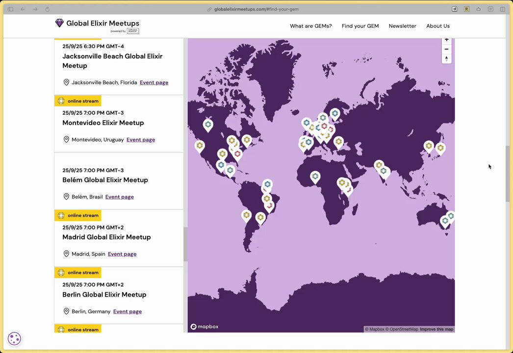So cool to see all of those Elixir meetups happening this week around the world! 🔥 👏 Global Elixir Meetups 👏 #ElixirLang