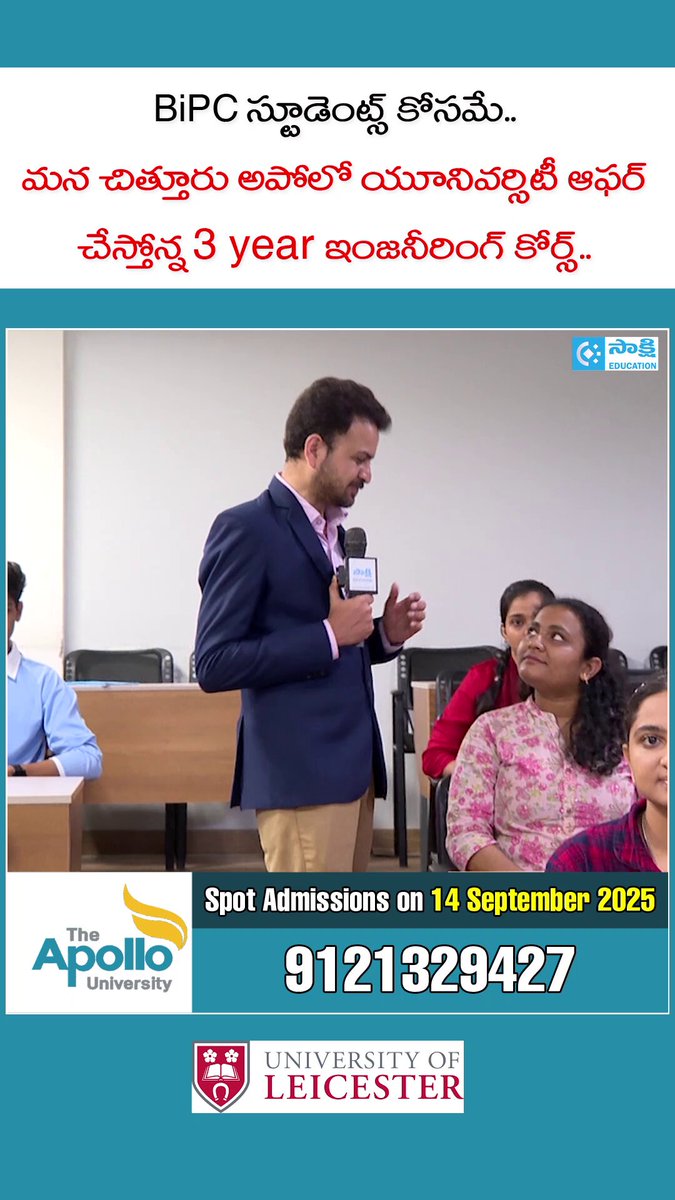 BiPC స్టూడెంట్స్ కోసమే.. మన చిత్తూరు అపోలో యూనివర్సిటీ ఆఫర్ చేస్తోన్న 3 year ఇంజనీరింగ్ కోర్స్.. | #ApolloUniversity #BiPCStudents #EngineeringCourse #UniversityOfLeicester #StudyAbroad #ChittoorUniversity #EngineeringAfterBiPC #EducationUpdates #CareerGuidance #SakshiEducation…
