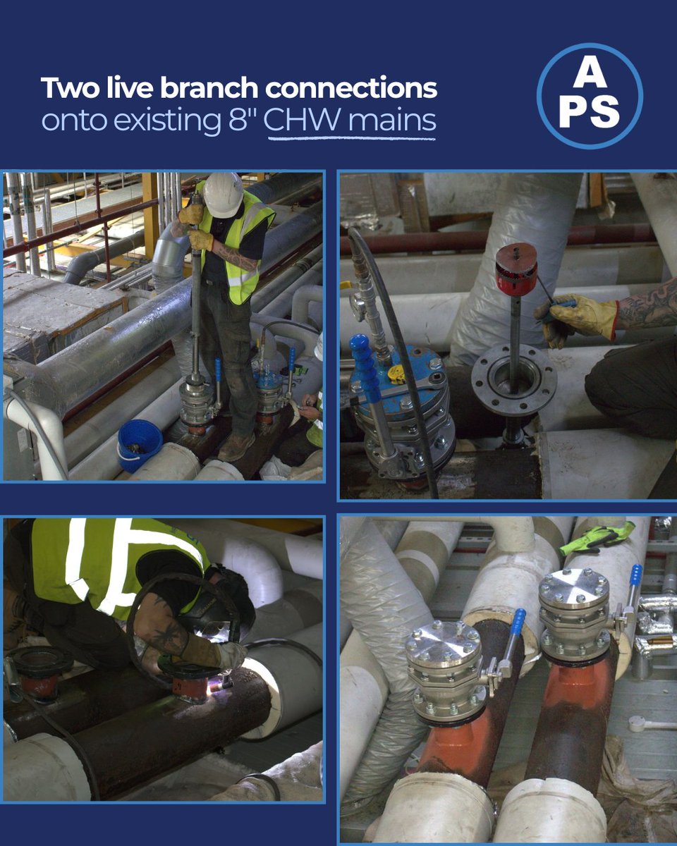 A new cooling unit installed, without ever stopping the flow. APS delivered two live branch connections onto existing 8" CHW mains, connecting the new cold store seamlessly and without disruption. Completed in just one day. #Pipework #EngineeringUK #APS