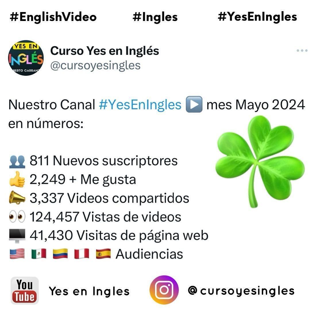 Cifras de Mayo 2024 para nuestro proyecto de inglés en línea ☘️ #englishvideo #ingles #yeseningles #idiomas #instagood #bestofover #inglés #english #englishonline #learnenglish #englishtips #vocabs #englishvideos #inglesonline #in… buff.ly/3ViHm82