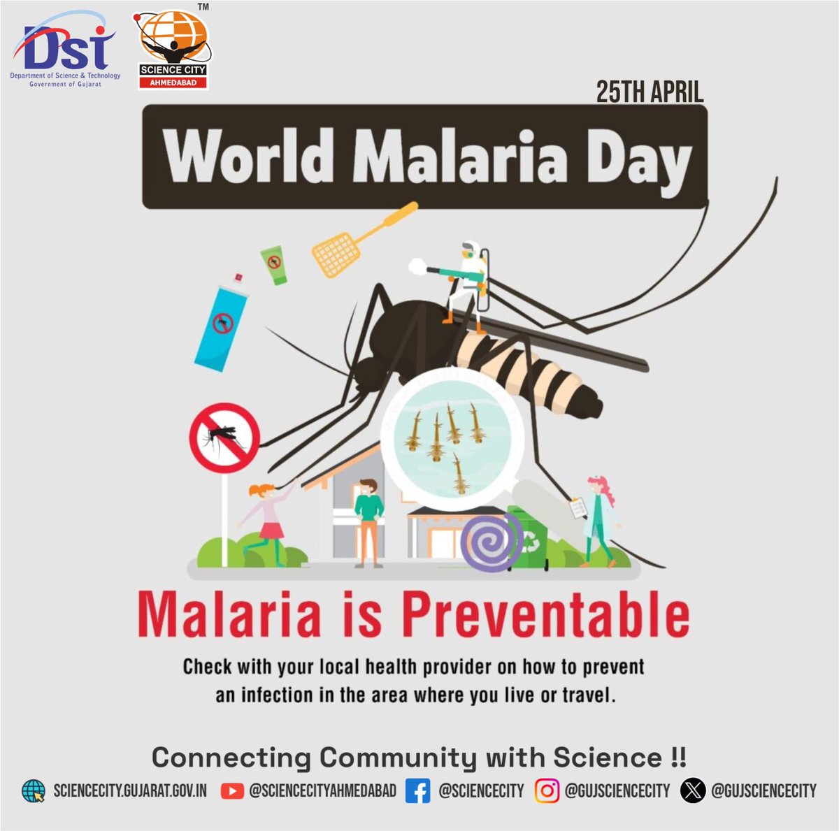 It's World Malaria Day! Together, let's accelerate the fight for a malaria-free future. #ZeroMalaria #EquitableHealth #ChaloScienceCity @IndiaDST @dstGujarat @jbvadar @InfoGujarat