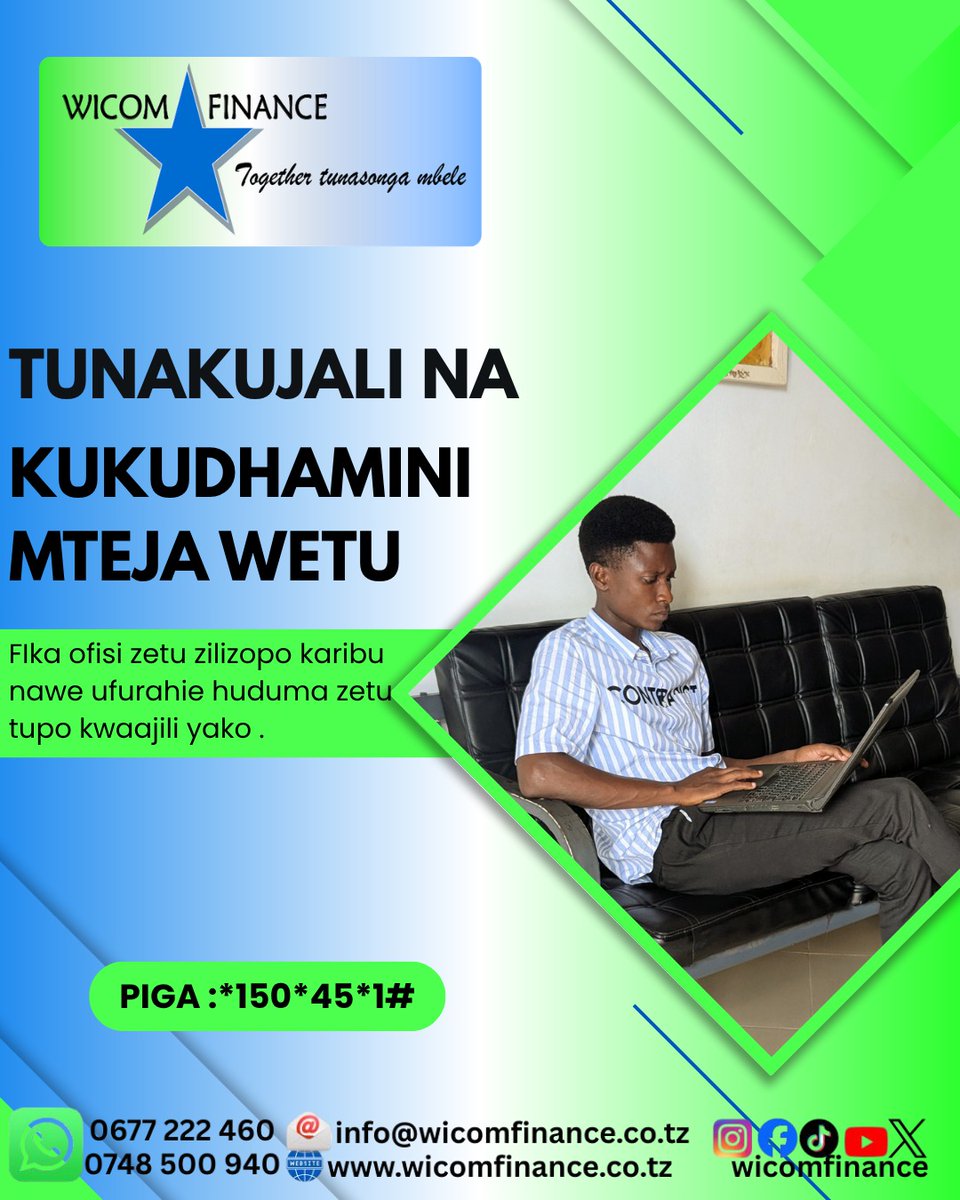 Tunakujali na kukudhamini mteja wetu , Fika ofisi zetu Leo ufurahie huduma zetu za mikopo uwe 👉 mtumishi wa umma , 👉mtumishi wa Kampuni binafsi , 👉Mfanyabiashara 👉 Mjasiriamali mawasiliano nasi kwa namba 👉0677 222 460 👉0748 500 940 Wfl, together tunasonga mbele 💪 #ess
