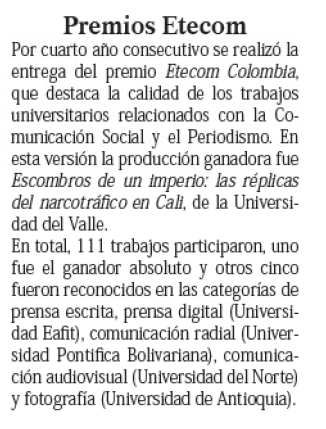 Historia de vendedor de dulces ganó Premio de Periodismo Etecom en categoría Prensa Escrita vía @reporaso #EtecomCol reporterosasociados.com.co/2014/12/histor…