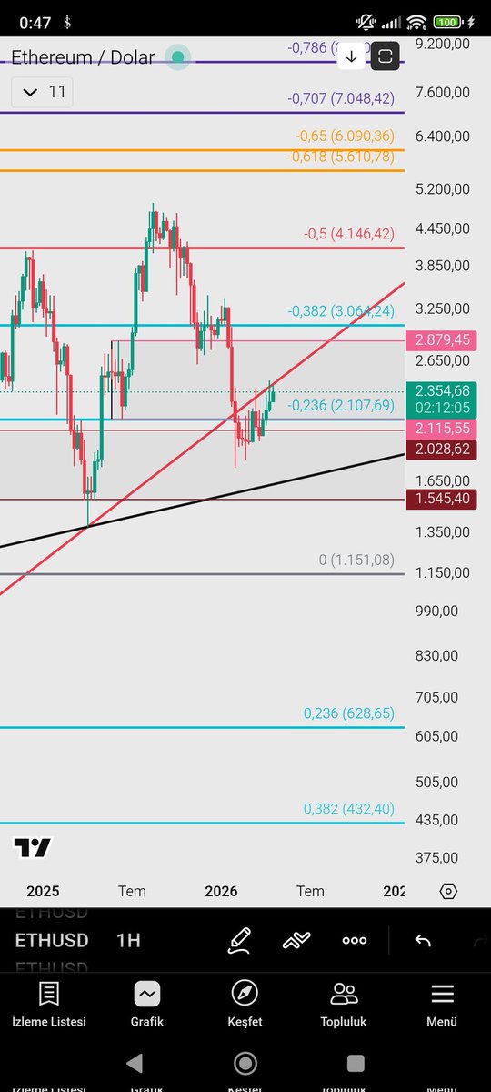 #eth'de ara direnç olan 2476yı beklerken #Ethereum 10 dolar farkla 2466dan tepki alıp 2250e kadar düşüp tekrar yükselişe geçti Ana direncimiz 2613 iken neden 2466dan tepki aldı anlatayım Çoğu fenomenler 880den bir yükselen cizmiş onu takip ediyorlar zaten bunların 1700