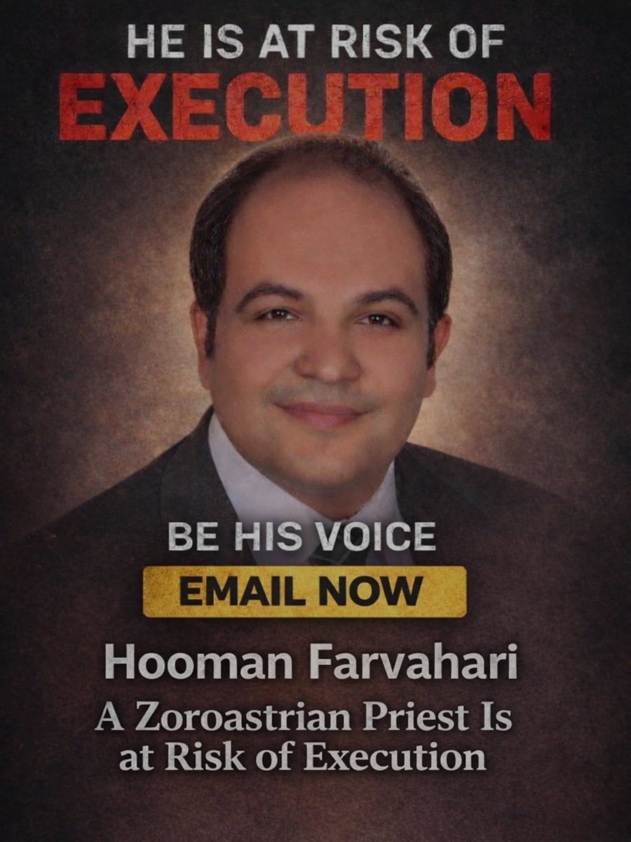 #Hooman_Farvahari,a Zoroastrian priest in Iran, has been arrested and is at imminent risk of #execution He was not present during the December protests in Iran.After returning to the country, he was detained and, without access to a lawyer or a fair trial,sentenced to death for