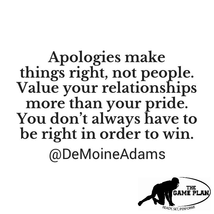 Apologies make things right, not people. Value your relationships more than your pride. You don’t always have to be right in order to win. #ExerciseYourLeadership