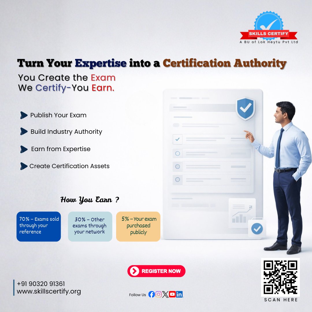 Your knowledge is powerful. Now it can be profitable too. Create your own certification. Build authority. Earn from your expertise. You create the exam. We certify. You earn. 💼✨ #SkillsCertify #ExpertToAuthority #EarnFromKnowledge