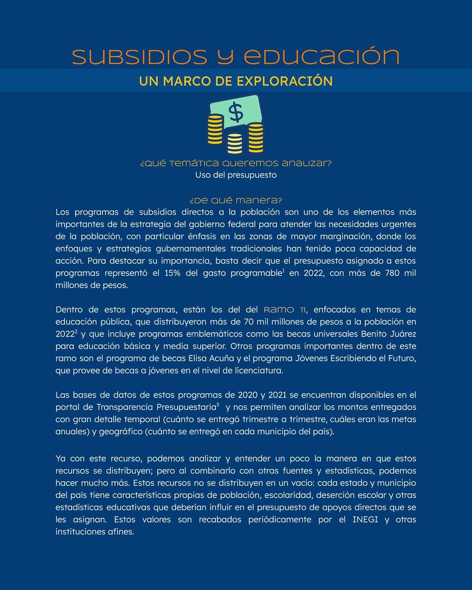 ¿Conoces los programas de subsidio directo? ¿Te has preguntado cómo se determina el presupuesto en educación? Acompaña nuestro proyecto para conocer más sobre cómo y con qué datos se toman estas decisiones. Gracias a @TPresupuestaria y @ciepmx #ExploraDatosMX #RallyMX