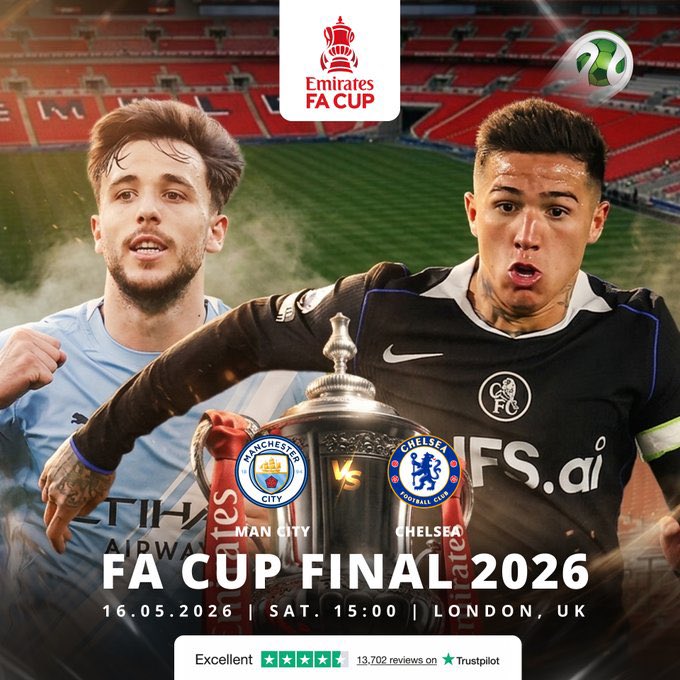 THE STAGE IS ABSOLUTELY SET!! In 18 days time the world is watching, itโll be #FACupFinal day and all eyes will be watching Man City/Chelsea at @wembleystadium, hereโs to more iconic and legendary moments that will live long in the memory ๐๐ป๐๐ป #FACup #FACupFinal2026
