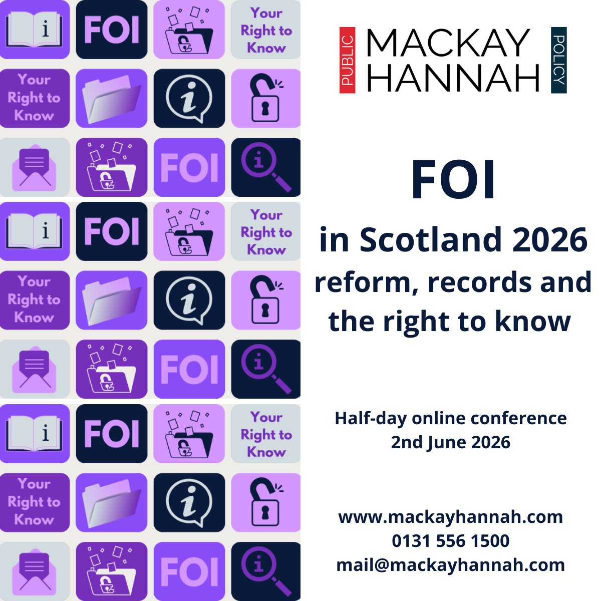 New conference Tuesday 2nd June 2026 More info ow.ly/lmwK50YsMnF How will the proposed Freedom of Information Reform (Scotland) Bill change day to day #FOI practice — and are you ready for what’s coming next?