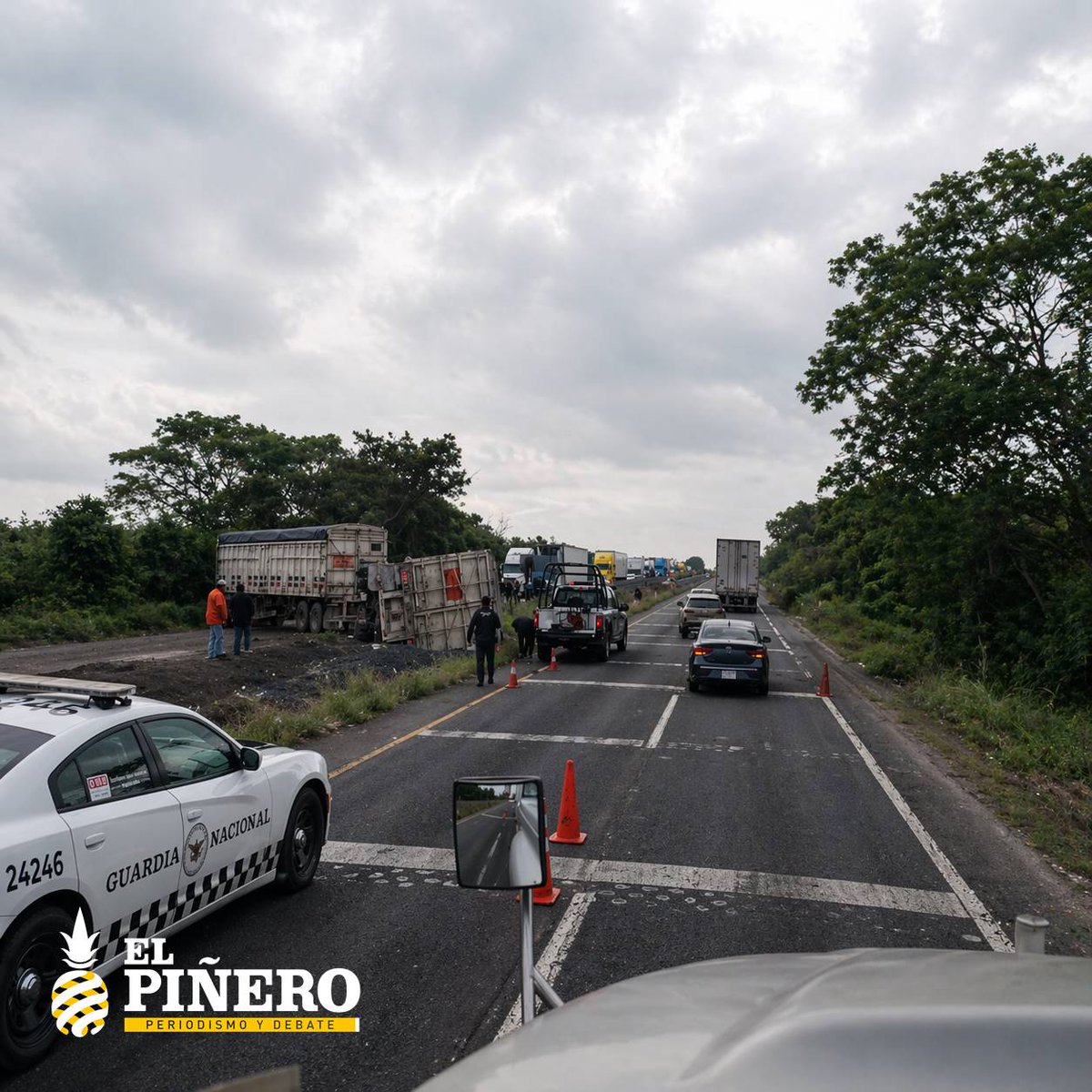 #FOTOREPORTE 📸 | Precaución en la autopista #Cosamaloapan–#LaTinaja ➡️ La mañana de este jueves se reportó un accidente en el kilómetro 68, con dirección de sur a norte. ➡️ Un tráiler quedó atravesado bloqueando por completo la circulación. ➡️ Automovilistas enfrentan