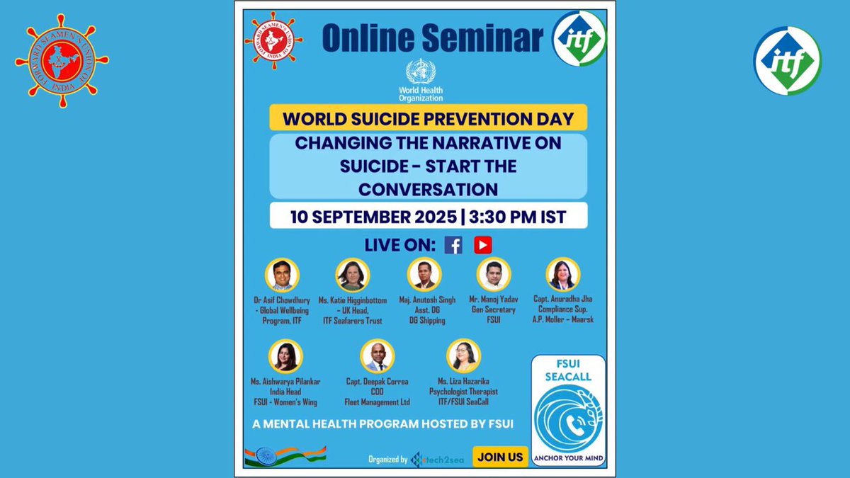 On World Suicide Prevention Day, FSUI organized an online seminar on ‘Changing the Narrative on Suicide – Start the Conversation’. Together, we stand for hope, support, and change. #WorldSuicidePreventionDay #MentalHealthMatters #FSUI #ITF #SeaCall