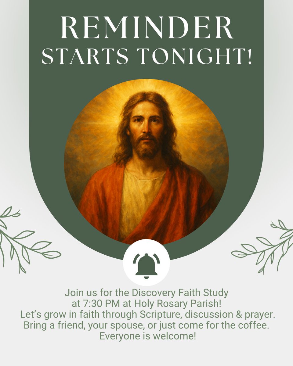 📢 Starts Tonight! Join us for the Discovery Faith Study at 7:30 PM at Holy Rosary Parish! 📖 Let’s grow in faith through Scripture, discussion & prayer. ✨ Bring a friend, your spouse, or just come for the coffee — everyone is welcome! #DiscoverJesus #FaithStudy #OLHR