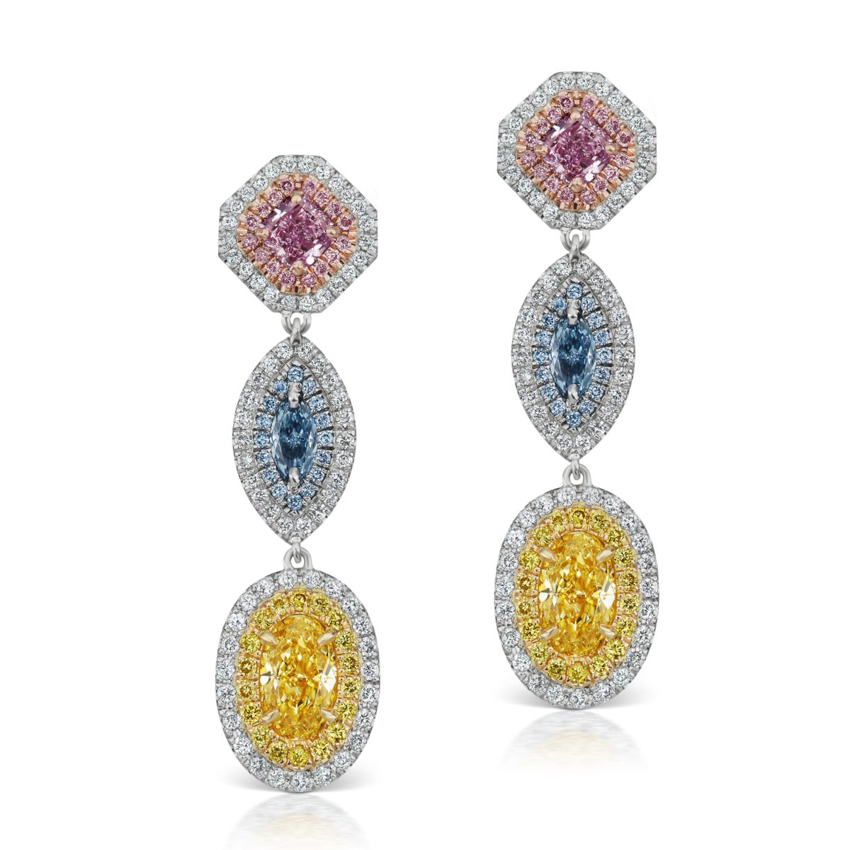New and Exciting Earrings. 6 different GIA Certification Natural pink ,natural blue, and natural yellow diamonds. #jewellery #fancycolordiamond #bluediamond #luxury #twitter