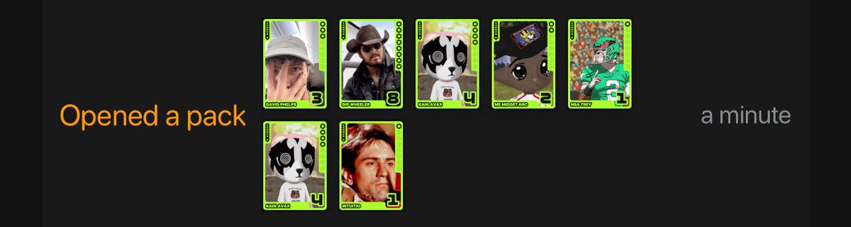 Just ripped 7 Jade packs @fantasy_top_ and out pops a @DipWheeler 🤠🔥 Luck? Skill? Pure destiny. Time to let the cowboy cook. 🐎💨 #FantasyTop #NFTGaming #PackLuck
