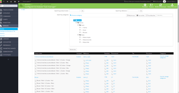 Le #module #prestashop #fastmanager récupère désormais les catégories comme sur les fiches produits !