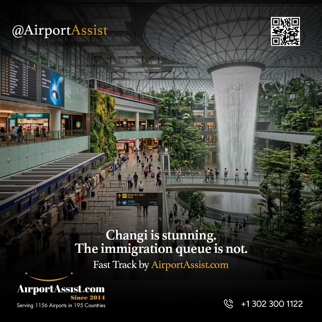 Changi is one of the most beautiful airports in the world. The immigration queue is not part of that experience. Fast Track by AirportAssist.com — skip the line, keep the vibe. #FastTrack #Singapore #Changi #MeetAndGreet