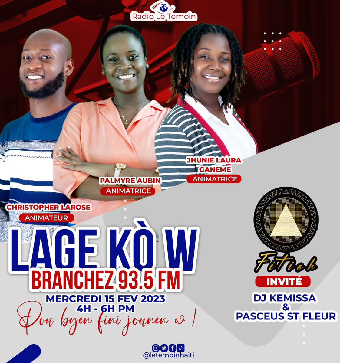 Pou premye entèvyou #Fitisch 🔥Mèkredi 15 fevriye branche 📻 Lage kò w sou 93.5 FM @letemoinhaiti instagram.com/p/CoqlcJ_vbBX/…
