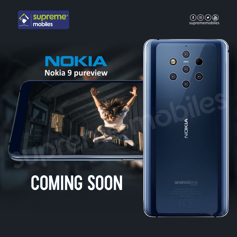 Coming Soon Nokia 9 PureView Explore every detail Five Camera with ZEISS Optics Android™ 9 Pie #nokia9pureview #suprememobiles #fivecamera #zeiss