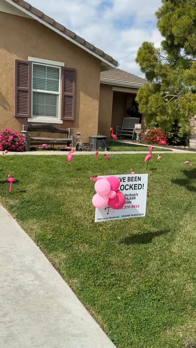 I’ve seen this fundraiser for a while, but I’ve never been flocked… until today! Came home from work to sunshine and a yard full of flamingos—so fun! Love this group and all they do for our amazing humans with special needs. What a great surprise! #Flocked #FlamingoFun