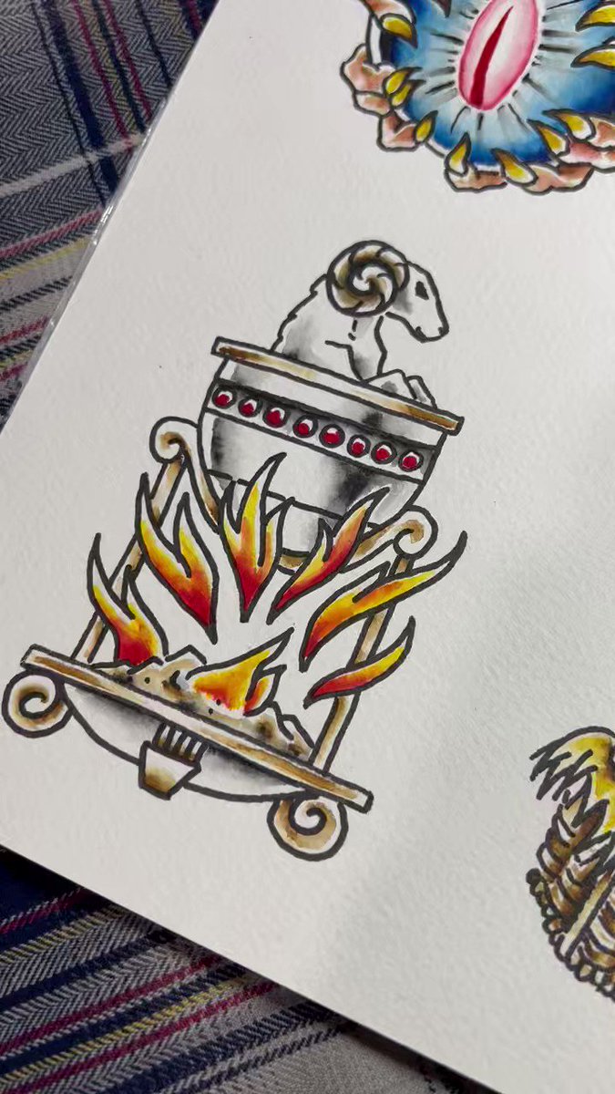 Just wrapped up a new piece on my #Flashsheet. Fun one for the upcoming #PaintNight on October 26th. #handpaintedtattooflash #Art 🎨🖌 youtube.com/shorts/59Dq49h…