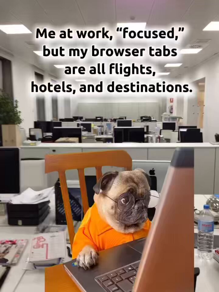 Me at work, looking all focused and productive… but every browser tab is a flight, a hotel, or a dream destination 💻✈️🌎😅 Because who said you can’t chase your goals and your next getaway at the same time?” #WorkModeActivated #WanderlustInDisguise #FlightModePending #TravelOn