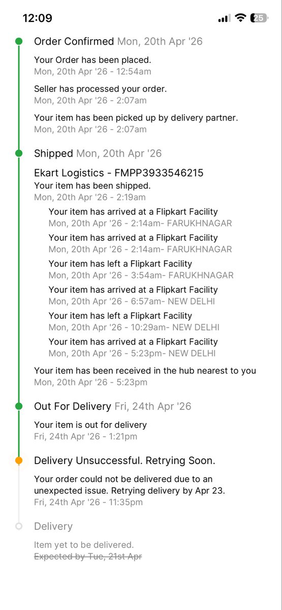 @flipkartsupport @Flipkart @jagograhakjago #Flipkart delivery can time travel as well as they will be attempting delivery on 23rd April. Today I guess is 25th April. Or may be you guys mean 23rd April 2027… tomorrow will post under each and every post on insta and fb