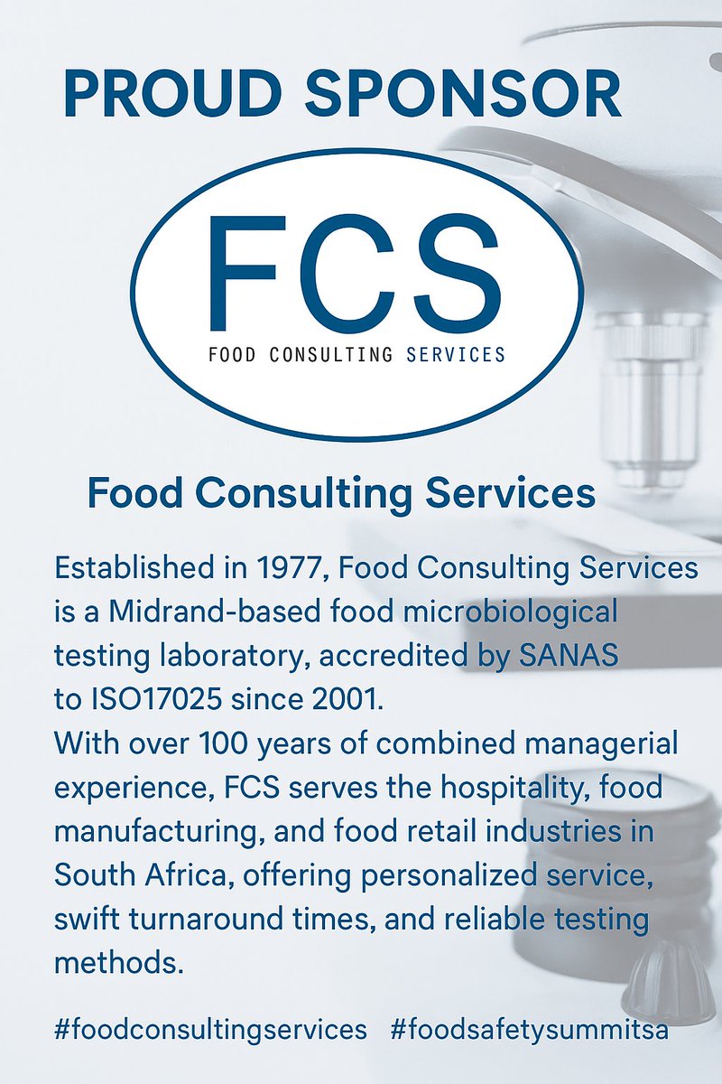 FCS offers SANAS accredited Food Microbiological Testing to ISO17025 to the hospitality, food manufacturing and food retail industries in South Africa. #foodsafetysummitsa #foodconsultingservices #foodmicrobiology