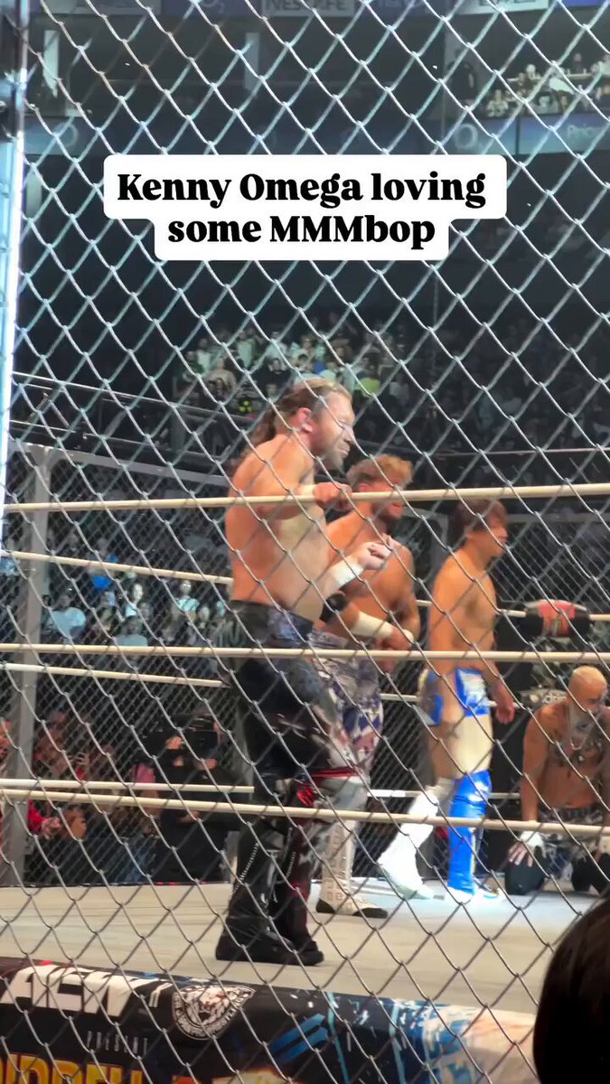 Kenny grooving out to MMMBOP!!!❤️🤘💯 (Epic Video from @BeyondGorilla_ ) #AEW #ForbiddenDoor #Elite #KennyOmega #YoungBucks