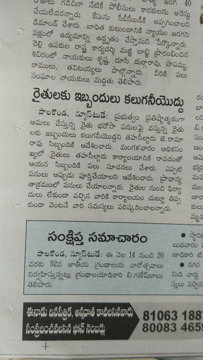 My contact number 9100538540 even #revenuepeople are issuing 1 b after collecting #revenuetax the palakonda what was given thepaper statement is not correct you put an enquiry and solve the #formersproblems🙏🙏