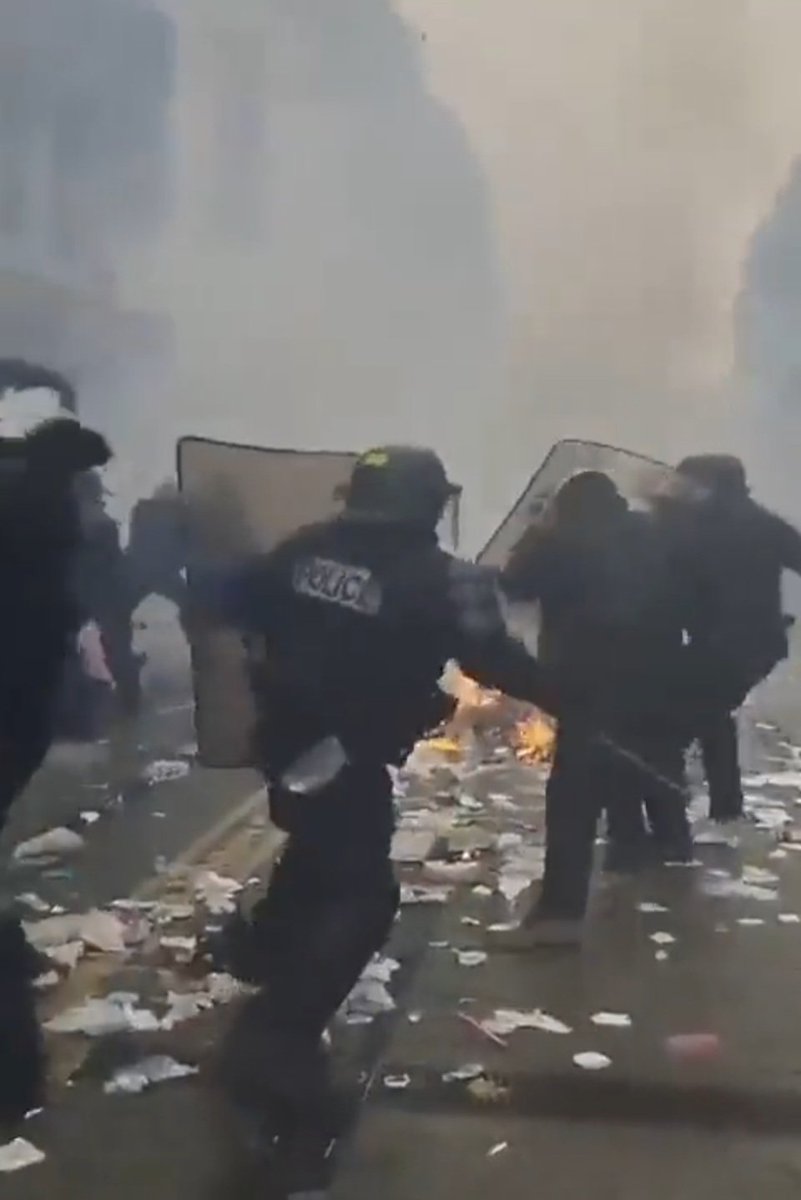 This is not democracy. French authorities are brutality violating freedom of expression. #FranceProtests #frenchprotests #FrenchPROTEST