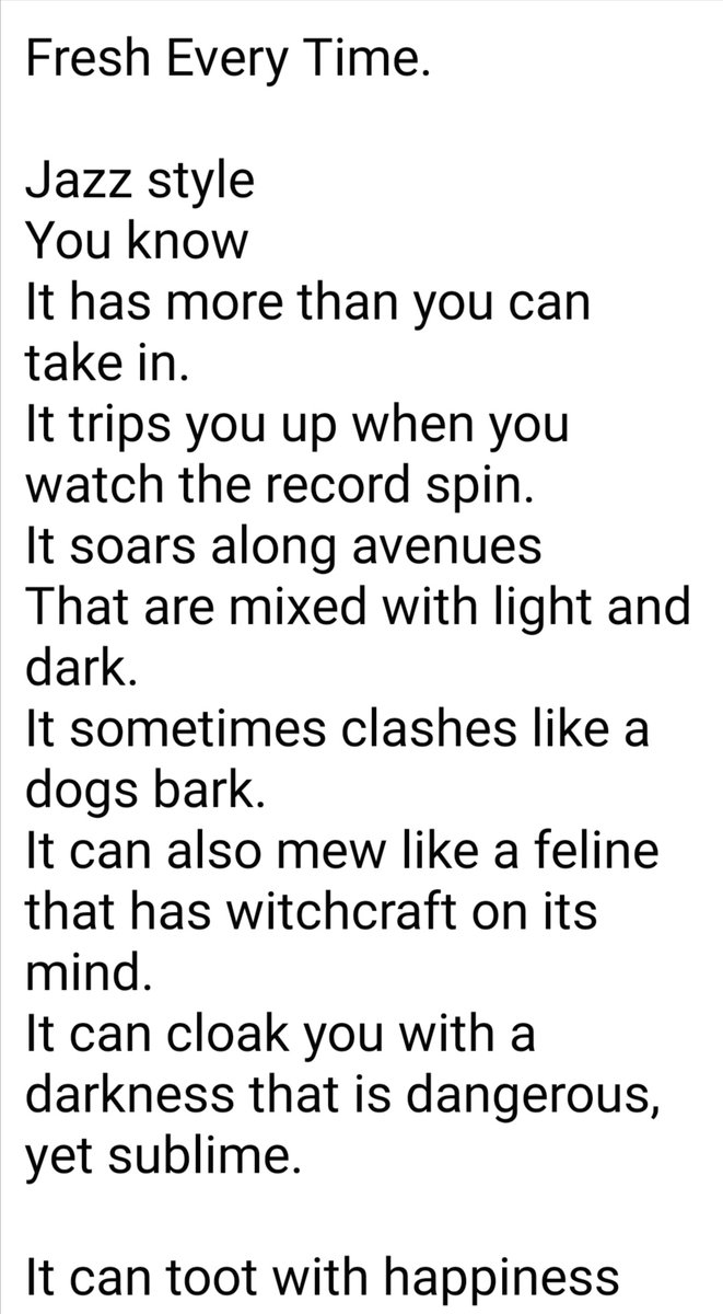 A new poem. I haven't written any Jazz related poetry for a while. #Jazz #FreshEverytime #jasondisleypoet