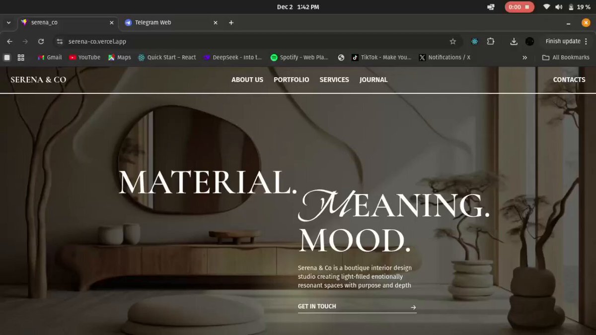New project just dropped! 🤭🚀 I built this Serena & Co interior design website during the @SheCodeAfrica Cycle 2 Mentorship. Grateful for the growth ✨ Live link + GitHub serena-co.vercel.app github.com/foidevans/Sere… #WomenInTech #FrontendDeveloper #Buildinpublic