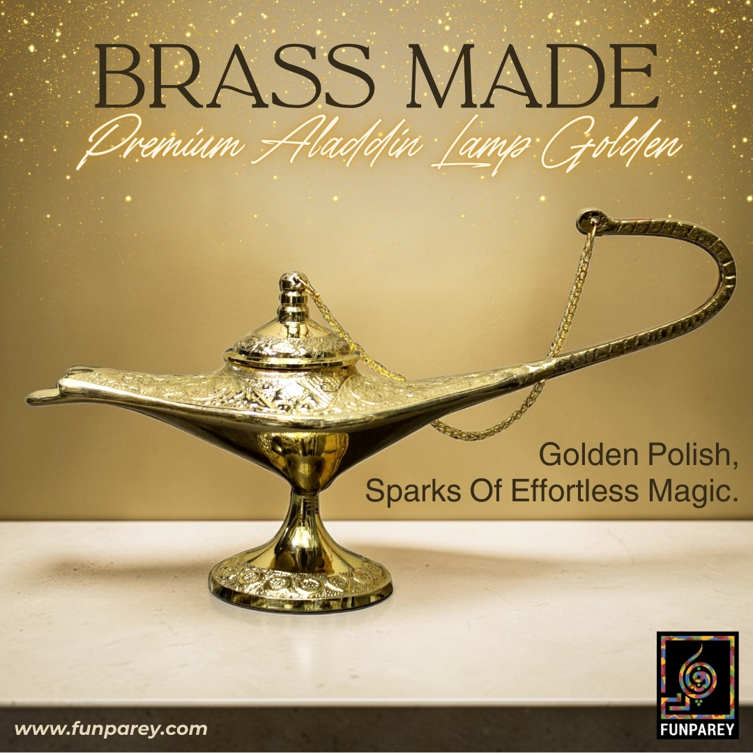 A classic for your collection. 8" Solid Brass Aladdin Lamp in a stunning full golden polish. Fully functional with an ignitable wick and detailed etched motifs. Order yours here: funparey.com/product/brass-… #Funparey #BrassMadePremiumAladdinLampGolden
