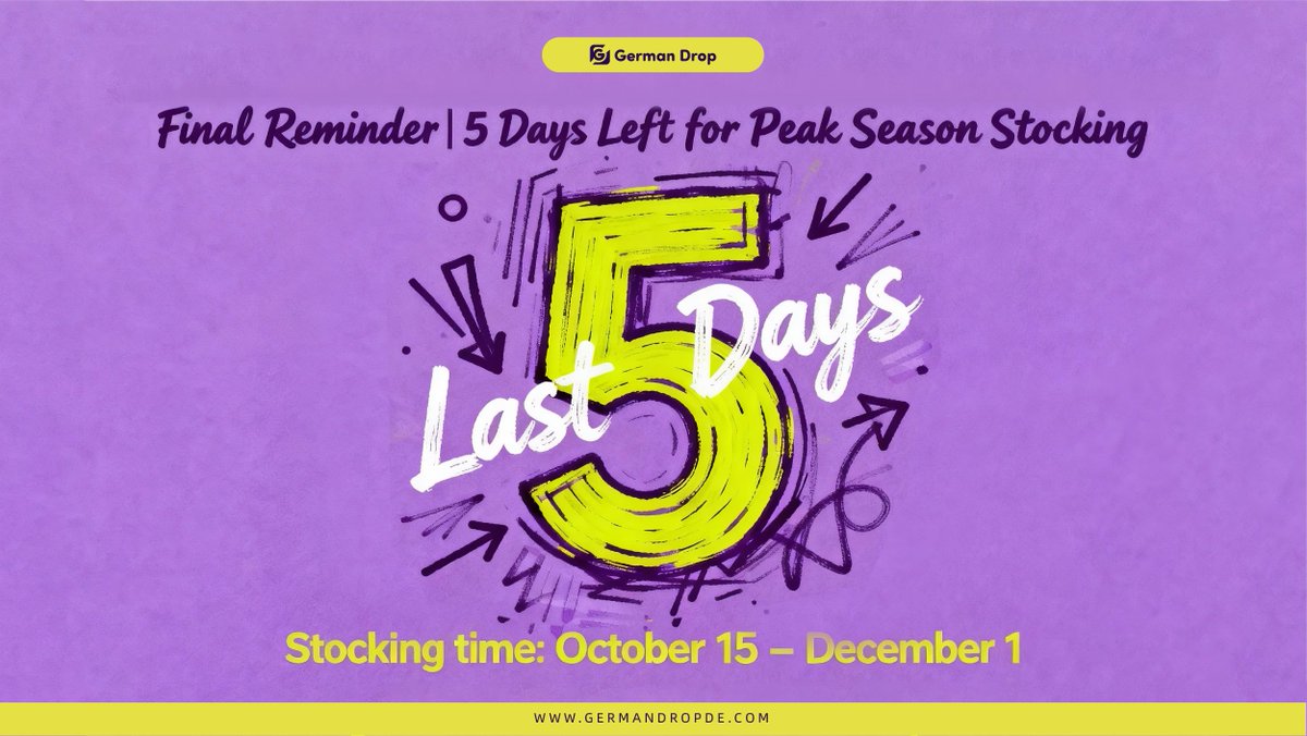 ⏳ Only 5 days left for peak season stocking! The deadline is Dec 1, 2025 — don’t wait until the last minute. Secure your Q4 inventory now to avoid shipping delays and year-end congestion. #PeakSeasonReady #GermanDrop #LogisticsEfficiency #Q4Preparation #Dropshipping