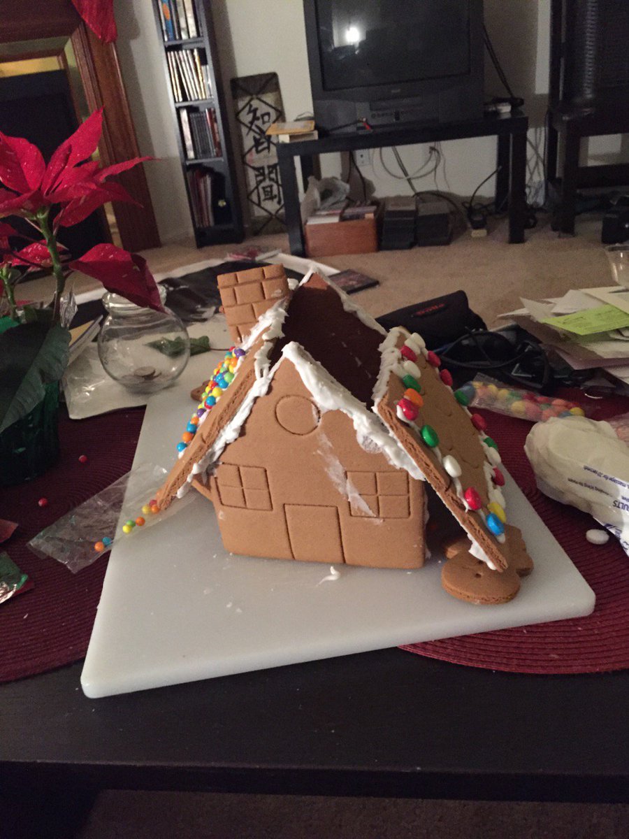 EARTHQUAKE! Hyland and I built a Californian gingerbread house. The snowman didn't make it. #GETDATEBOX