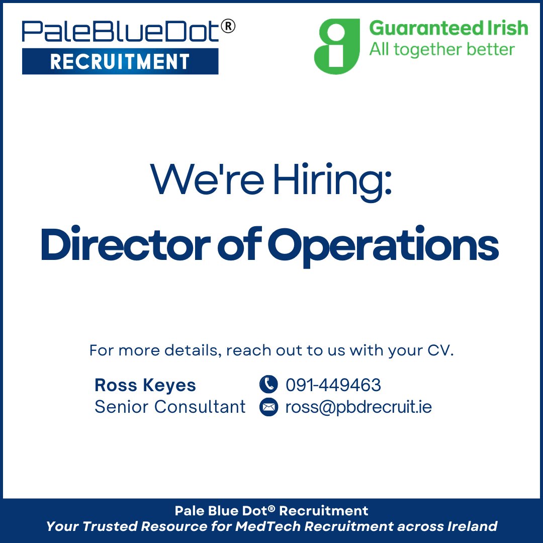 Our client, a leading medical device manufacturing company in Limerick, is seeking a Director of Operations to lead its production operations. Contact Ross or visit pbdrecruit.ie/explorejobs/#j… for more details #PaleBlueDotRecruitment #MedTech #GetInvolvedToday