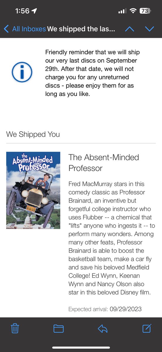 Definitely the end. Bonus discs arrived which marks my final delivery from @dvdnetflix. Thanks for one of the designed envelopes! #GetThroughMyQueue