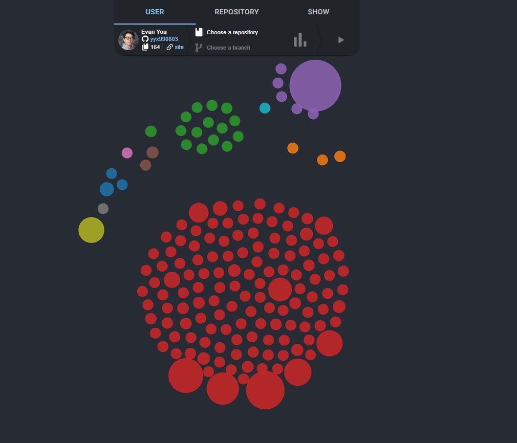 Muy chulo para ver la evolución de un repositorio en github: #GitHubVisualizer - kcy.me/27e84
