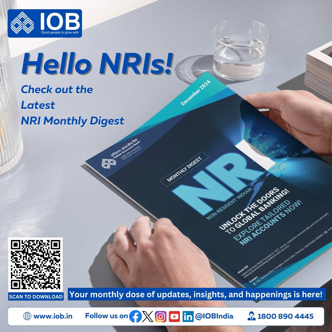 Stay globally connected with Indian Overseas Bank's NRI Monthly Digest! 🌍📈 Dive into the latest updates, financial insights, and opportunities crafted just for our NRI community. #IOBNRIDigest #GlobalConnect #FinancialInsights iob.in/UPLOAD/CEDocum… #IOB #IndianOverseasBank