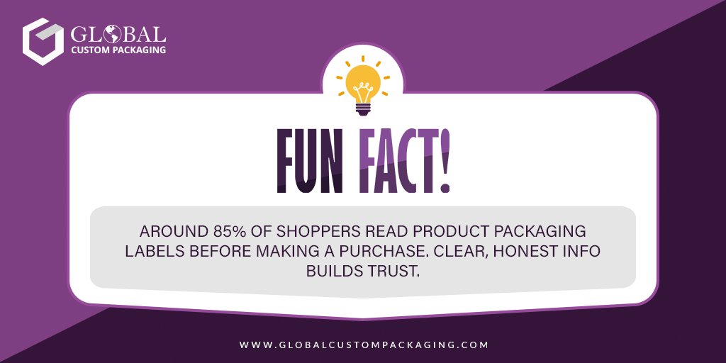 📣 Fun Fact 🧾 Around 85% of shoppers read product packaging labels before making a purchase. Clear, honest info builds trust! Visit our website: bit.ly/3KsUWQM Call: +1(425) 214-9690 . . #globalcustompackaging #packagingsupplier #packagingboxeswithlogo #shippingboxes